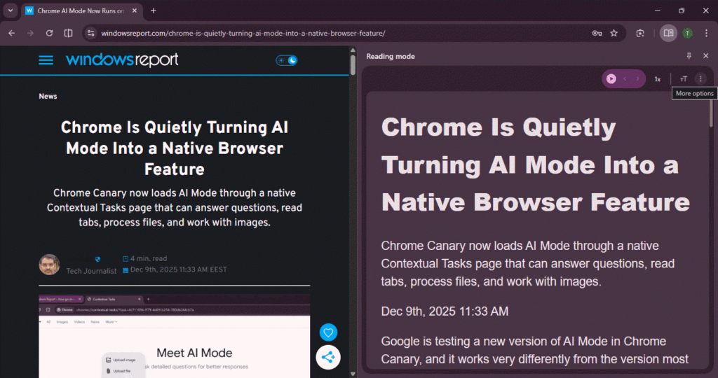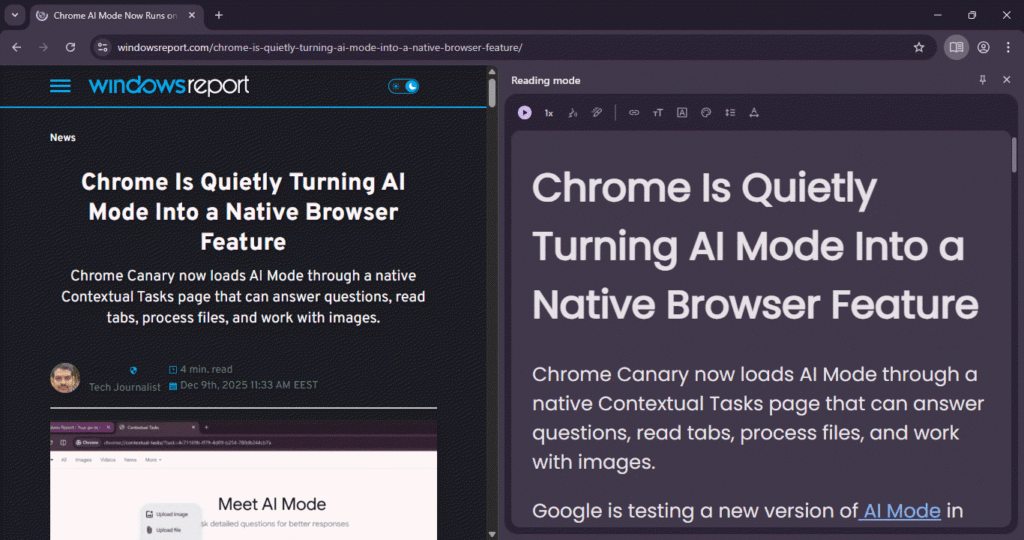 Google is slimming down the Reading Mode in Chrome. We earlier reported that a commit and its flag description pointed this feature in a more “immersive” direction. The latest changes in Chrome Canary now give a clearer picture of how this work shapes the Reading Mode interface.