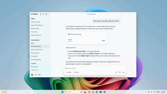 The update lets users skip menu diving entirely. If you type or say something like “Make my screen easier to read” or “Help me focus by reducing distractions,” Copilot now provides a direct link to the corresponding Settings page.