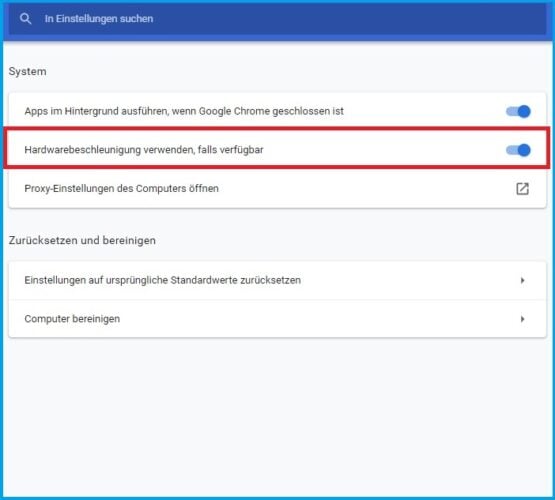 3. Schalten Sie die Hardwarebeschleunigung aus