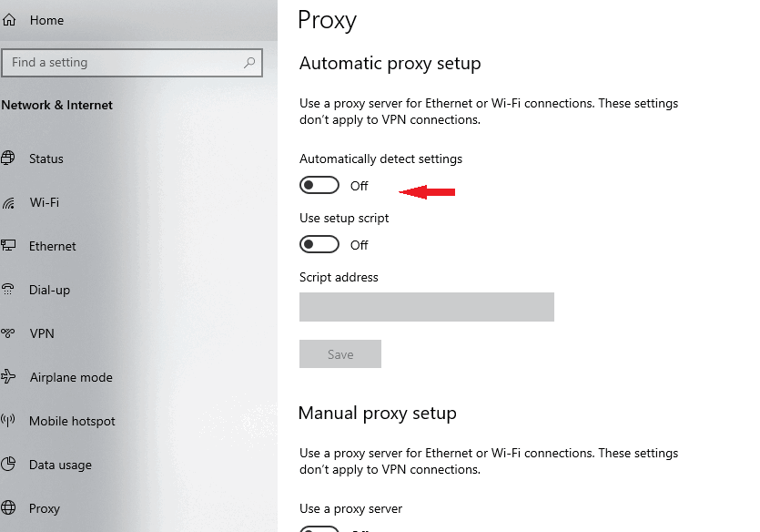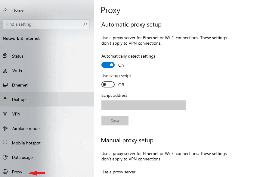 2. Open the Proxy menu.failed DSIM reboot in windows 10