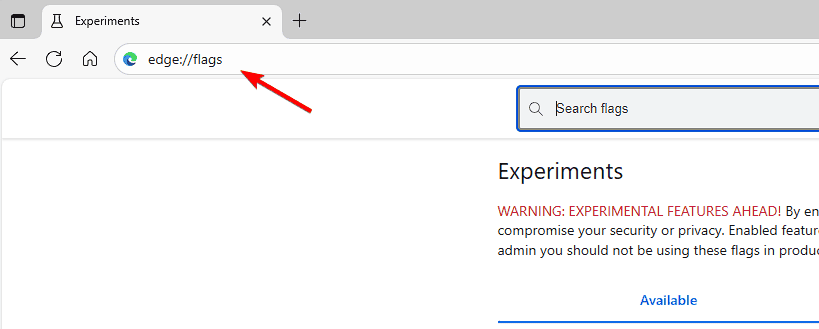- Open a new tab and type edge://flags in the address bar.