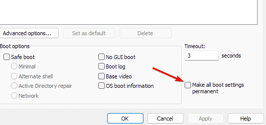- Check Make all boot settings permanent (optional), then click Apply and OK.