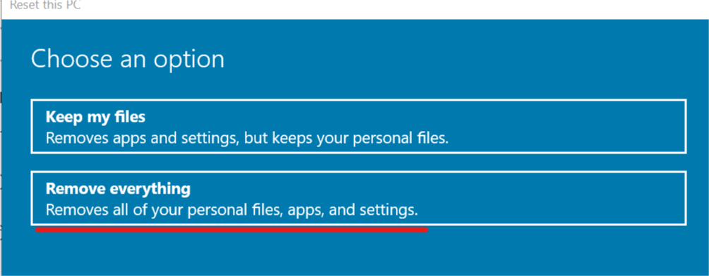 This option formats the system drive without a USB and reinstalls Windows automatically.