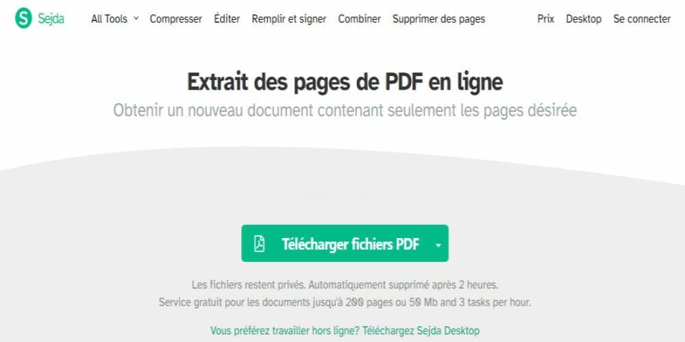 - Cliquez ici pour ouvrir l’extracteur Sejda PDF dans un navigateur.