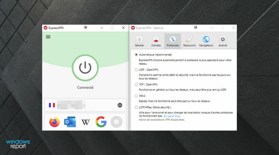 Nous recommandons surtout les VPN furtifs ou bien aux capacités d’obscurcissement qui peuvent déguiser le trafic VPN en trafic normal. D’ailleurs, un VPN seul ne suffit pas pour immuniser votre appareil contre toutes les menaces possibles.