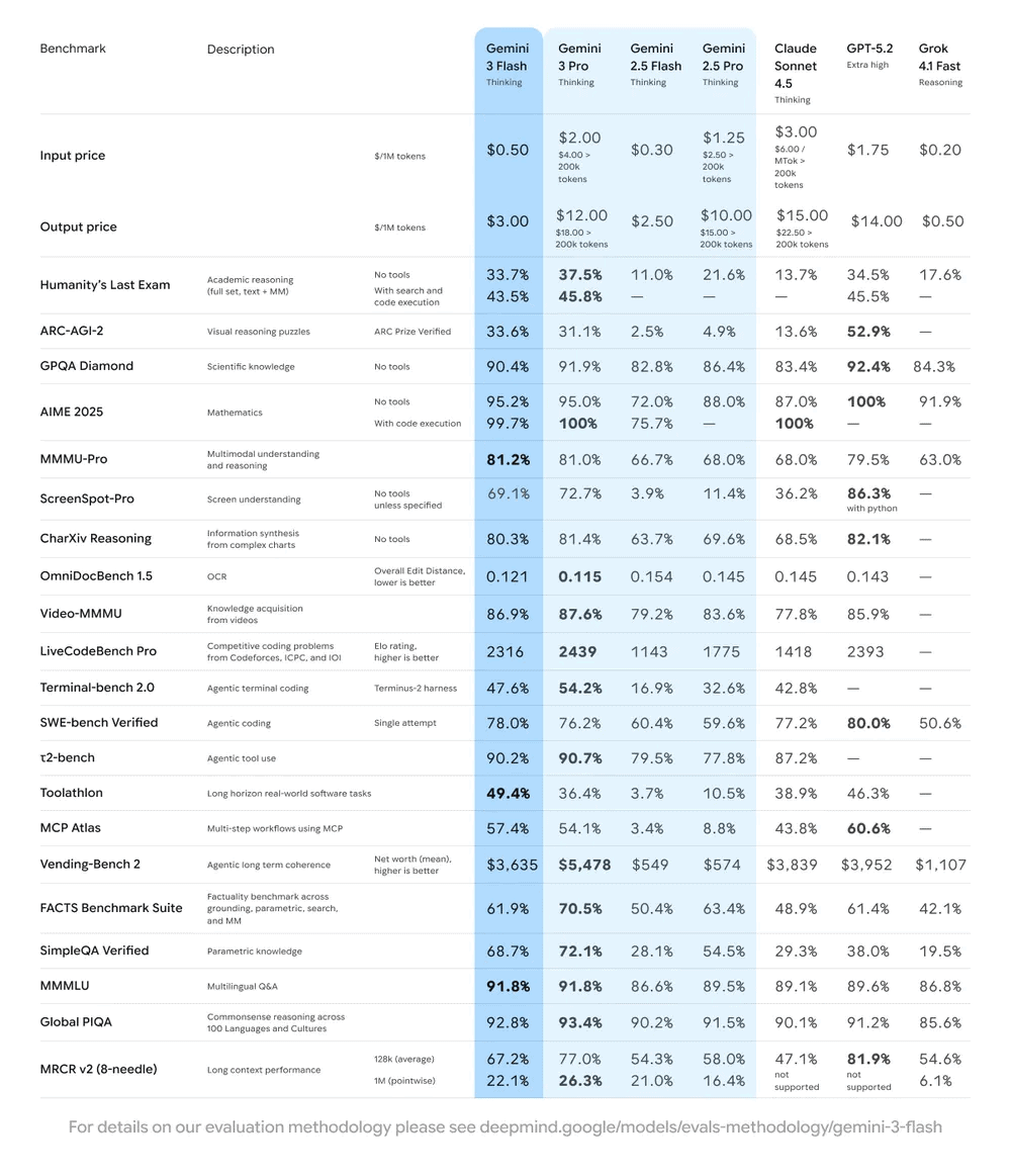 The new model is based on Gemini 3 Pro, which allows for faster speed performance, rich multimodal understanding and cheaper cost that is suitable for coding, gaming and enterprise applications. Gemini 3 Flash, at it’s heart is the Pareto frontierof efficiency and capability.