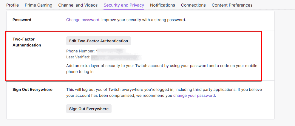 To secure your Twitch account, set up two-factor authentication to protect your login.