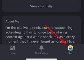 - Open Discord and tap your profile picture in the bottom right.