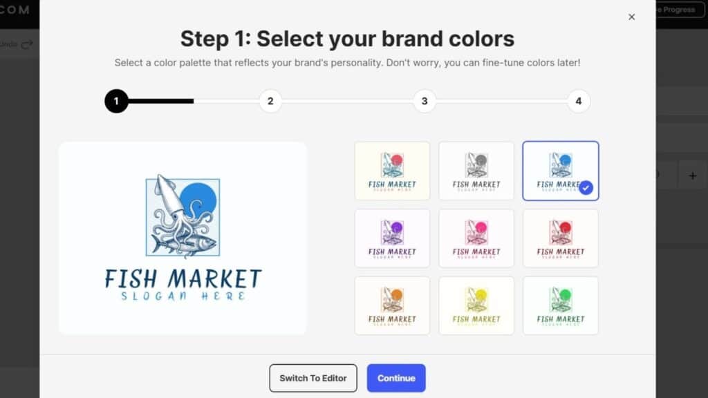 Your color palette forms the emotional and visual backbone of your brand. Design.com automatically extracts colors from your logo, giving you an instant set of coordinated brand tones.