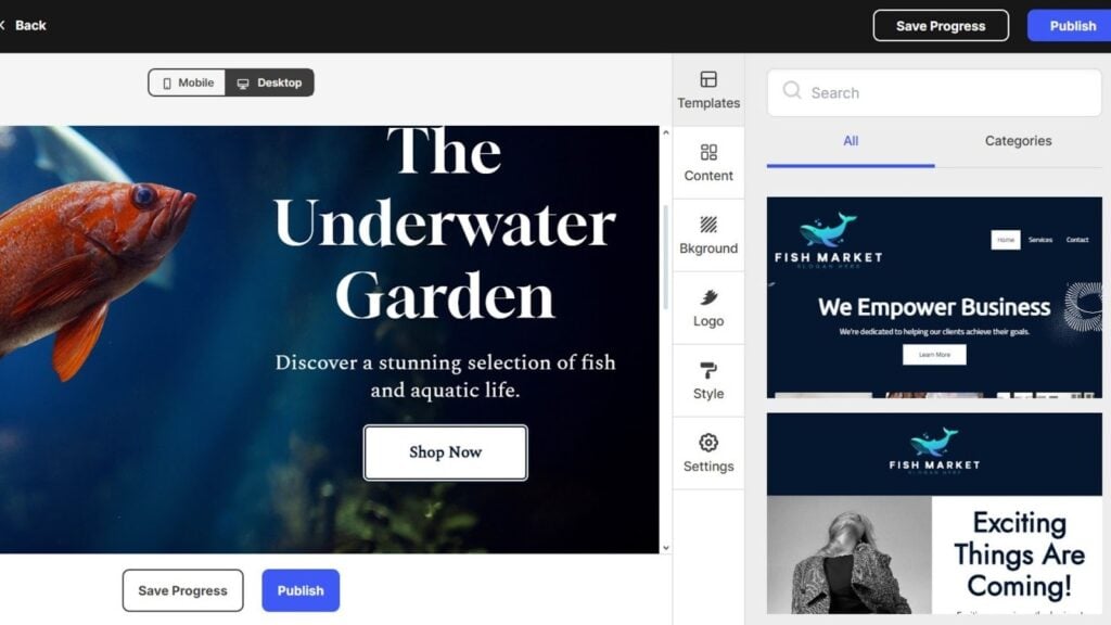 Your brand kit is not complete without an online presence, and Design.com makes this step accessible to everyone. Every plan including free logos includes website building tools that automatically apply your brand identity.