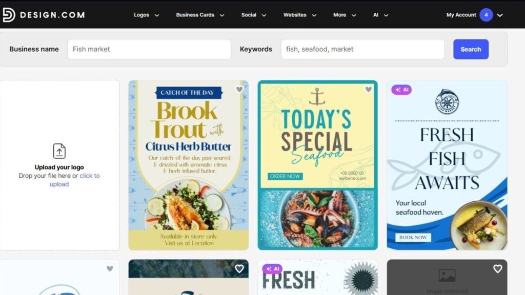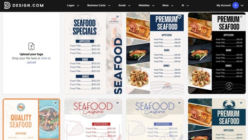 Design.com instantly generates business card layouts using your logo, colors, and typography. This ensures your brand’s identity is clear and professional from the first point of contact.