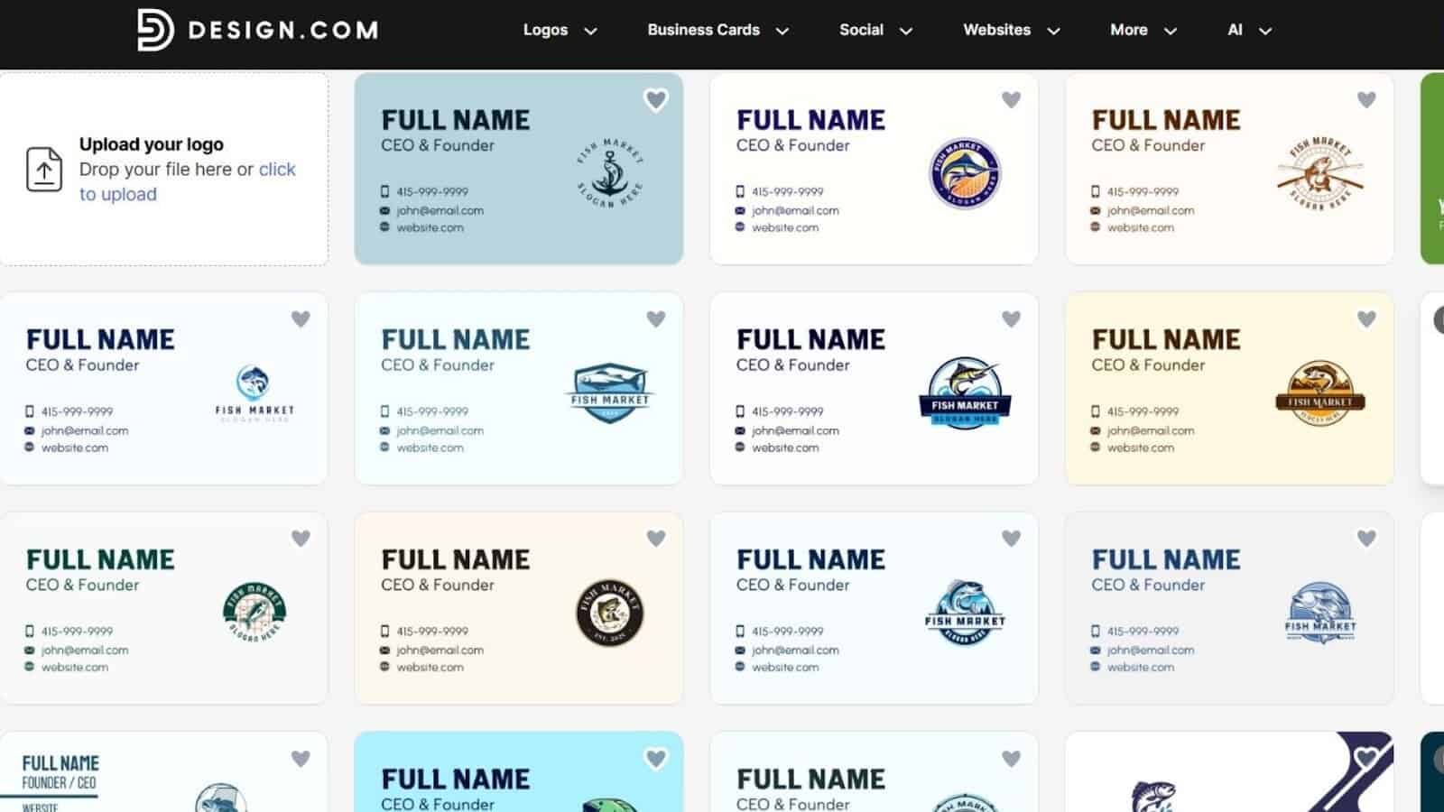 Design.com instantly generates business card layouts using your logo, colors, and typography. This ensures your brand’s identity is clear and professional from the first point of contact.