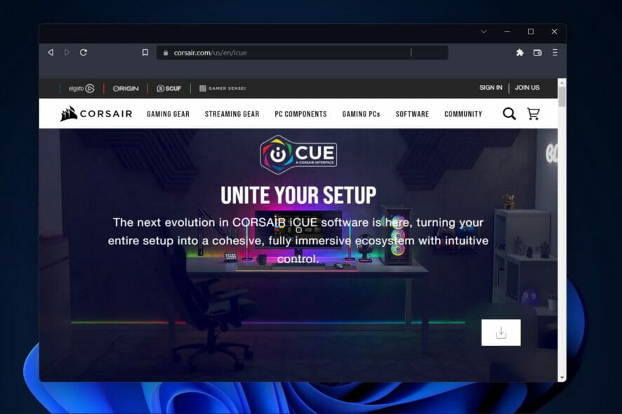 - Next, head to Corsair’s website and click on the Download button to download iCUE.