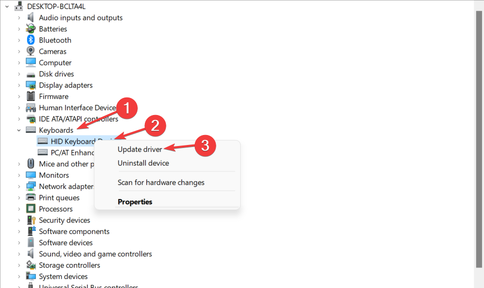 - Here, expand the Keyboards section if your iCUE is not detecting your keyboard, then right-click on the keyboard device and choose Update driver.