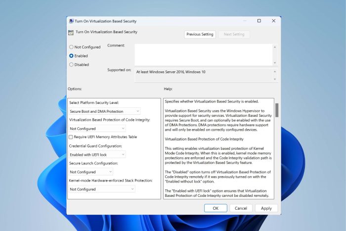 Selezionando l’opzione disabilitata o Non configurata si interromperanno le attività di Windows Defender Credentials Guard su Windows 11.
