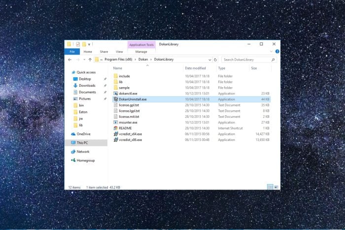 C:ProgramFiles (x86)DokanDokanLibraryDokanUninstall.exe - Fai doppio clic sul programma di disinstallazione per avviarlo e seguire la procedura passo passo per disinstallare Dokan Library.