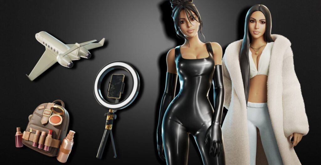 - Ring Light and Phone (Back Bling) for 400 V-Bucks: A creator-style accessory set modeled after Kim’s influencer tech.