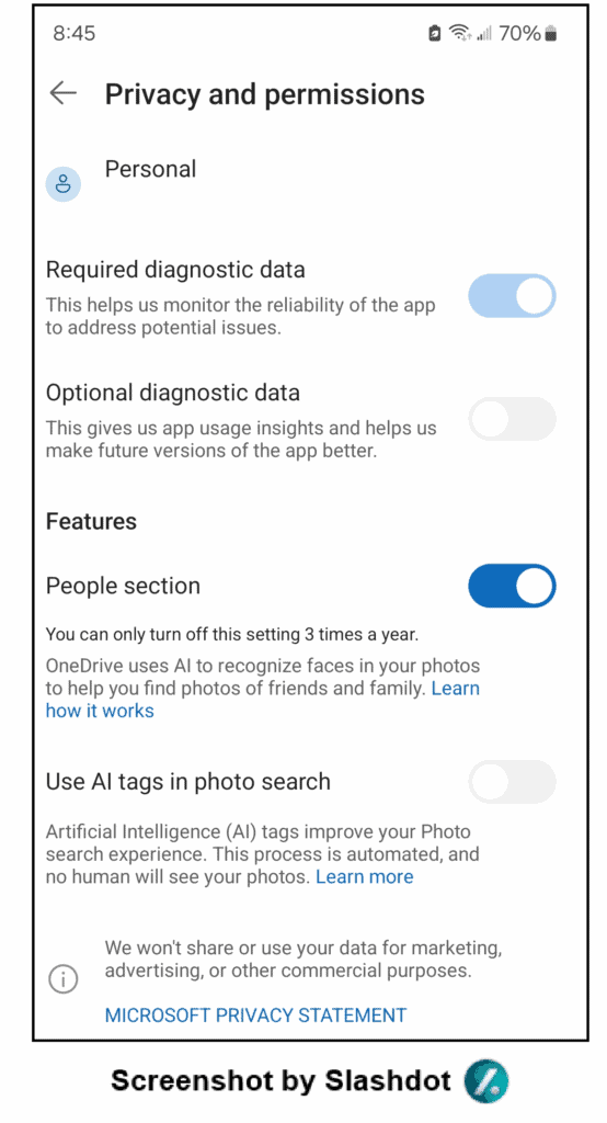 Following up on the story, Windows Central came across Microsoft’s own documentation that talks slightly different. The company says users can disable face recognition freely via the OneDrive settings page, and that doing so permanently deletes all face data within 30 days.