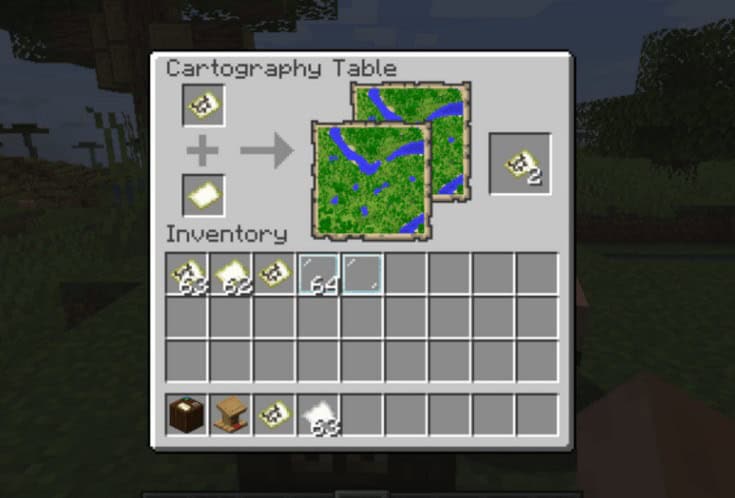 - Craft a cartography table with 2 paper and 4 wood planks.