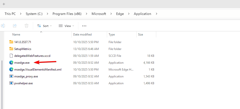 - Navigate to C:\Program Files (x86)\Microsoft\Edge\Application.