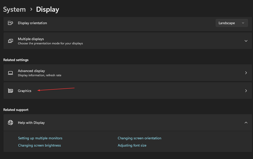 - Select Graphics settings.
