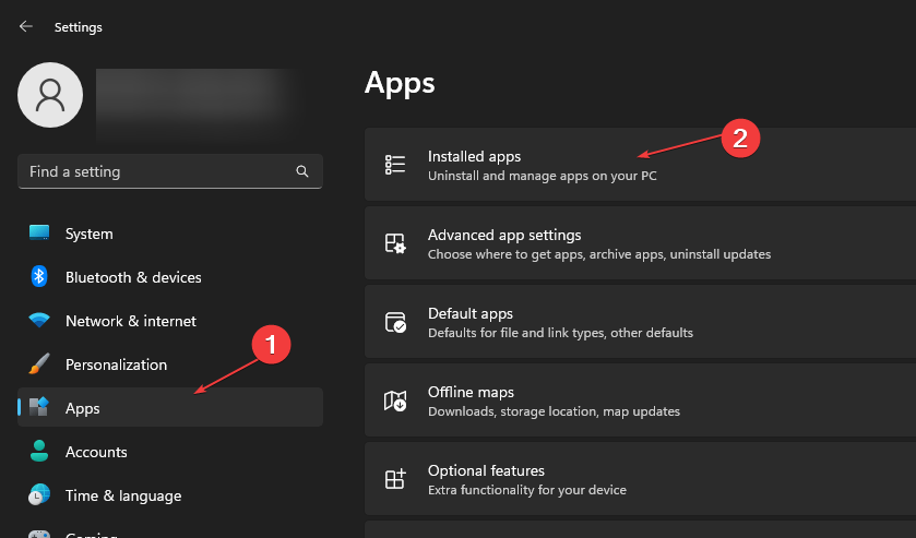 - Select Apps from the left pane of the screen and click Installed apps.