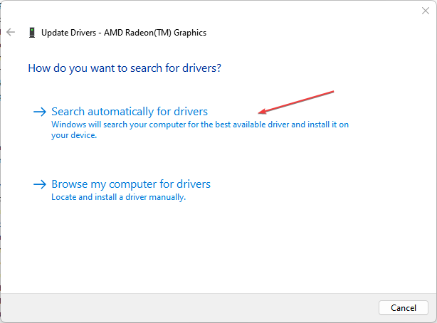 - Select the Search automatically for drivers option.