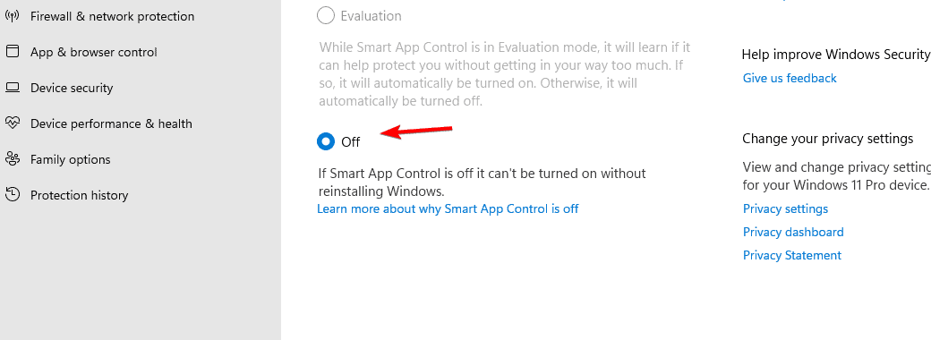 If nothing else works, you can turn off Smart App Control. Keep in mind that once disabled, it cannot be turned back on without reinstalling Windows.