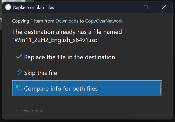 Microsoft has improved the dark mode experience in File Explorer, ensuring dialogs for copying, moving, deleting, and confirming actions now appear consistently styled. Progress bars, chart views, and error pop-ups are all harmonized under a single theme for a cleaner visual flow.