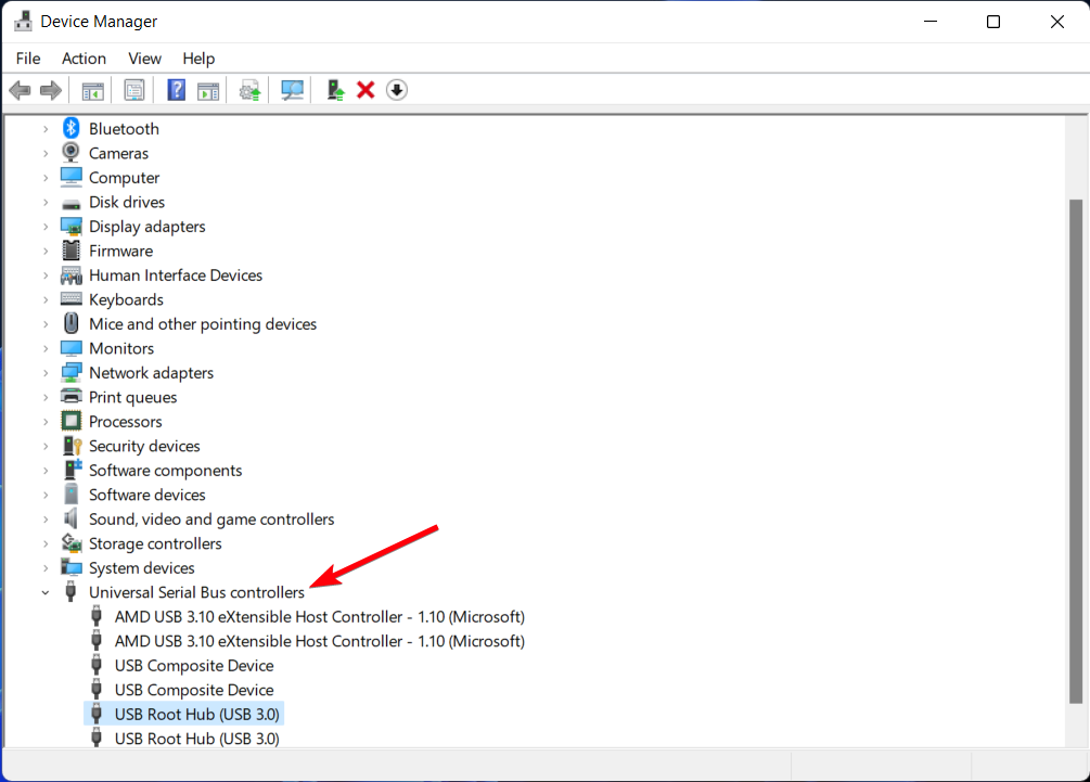 - Double-click Universal Serial Bus controllers to view that USB category.