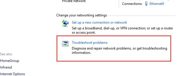 - If you are disconnected, click Troubleshoot problems and follow the prompts.