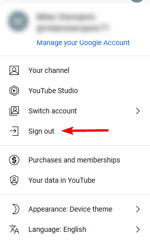 Log out of your account if you're having account issues on YouTube